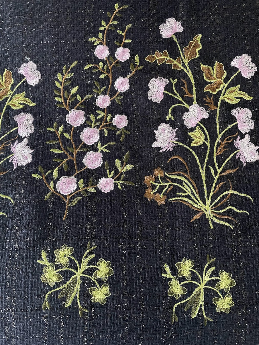 All that you can see here (Fabrics, Trims, Buttons) are in stock and feel free to choose any of them for your project
